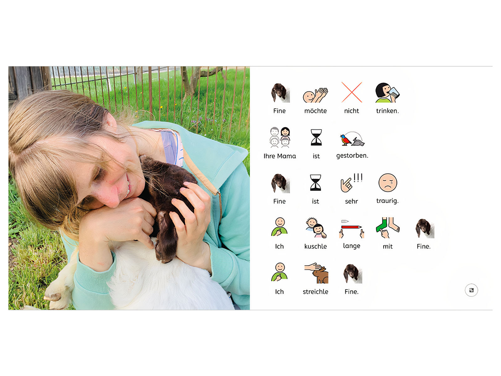 Das Fotobuch besticht mit schönen Fotos der Abenteuer von Jennifer, ihrer Ziege und ihrem Hund. Der Text ist zusätzlich mit METACOM Symbolen visualisiert, so dass er von allen Personen gelesen werden kann.