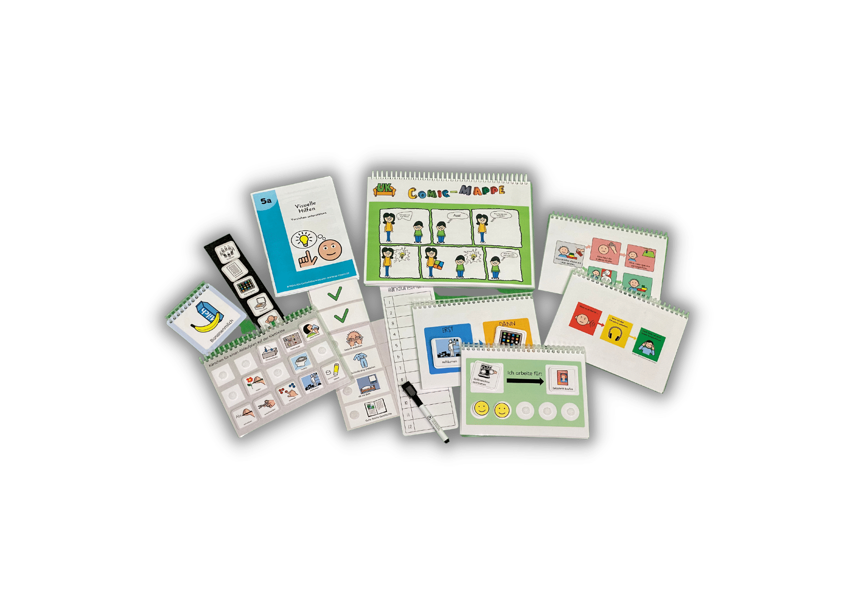 - Visuelle Hilfen, Ablaufplan, Rezeptbuch, Erst-Dann-Plan, Verstärkerplan, Verhaltens-/Regelhefte