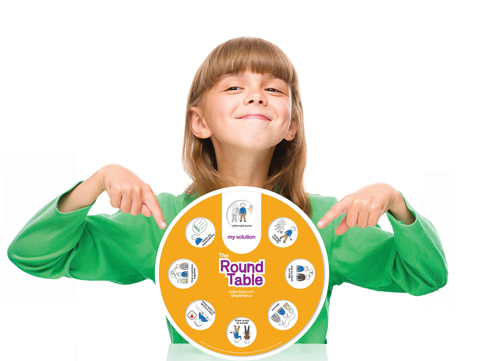 Das runde Tisch-Rad ist ein 2-seitiges Drehrad, das Kindern hilft, Konflikte zu bewältigen und schnell eine Lösung zu finden.