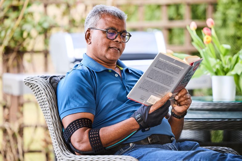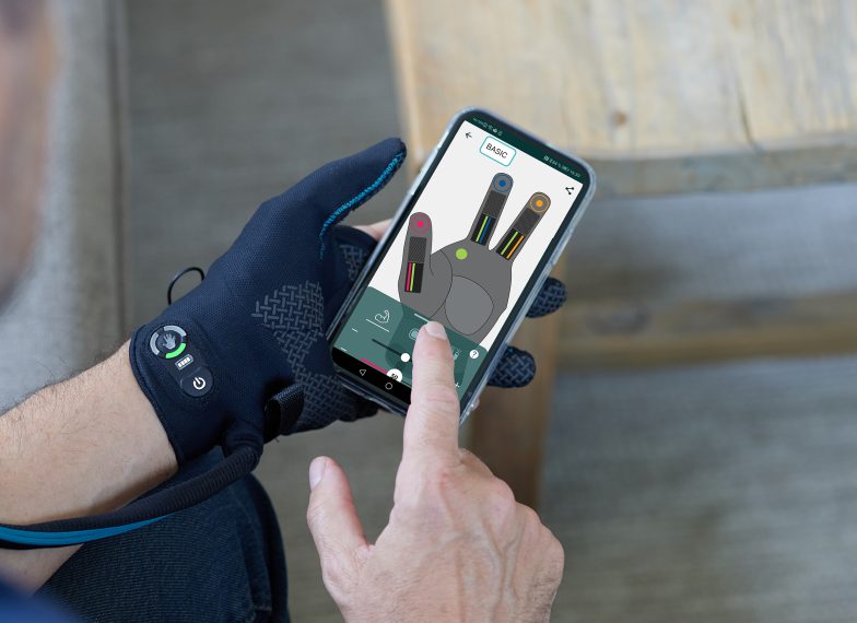 Carbonhand ist ein intelligenter Handschuh, der bei eingeschränkter Handfunktion Greifkraft und Feinmotorik verstärkt und dadurch die Selbstständigkeit im Alltag steigert.